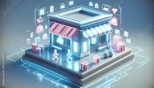 Holographic Retail Store Projection on Plain Background for Future Shopping Experiences