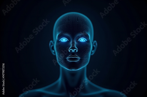 Holographic woman technological head portrait Futuristic face female humanoid robot.A Technological Future. information space. Copying space.generative ai