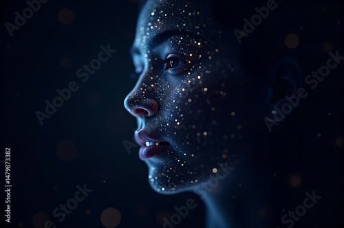 Holographic woman technological head portrait Futuristic face female humanoid robot.A Technological Future. information space. Copying space.generative ai