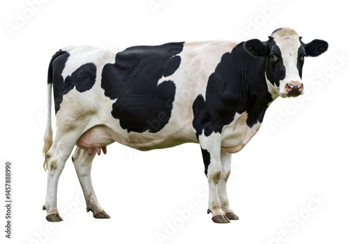 Holstein cow standing isolated on white background, side view, full body