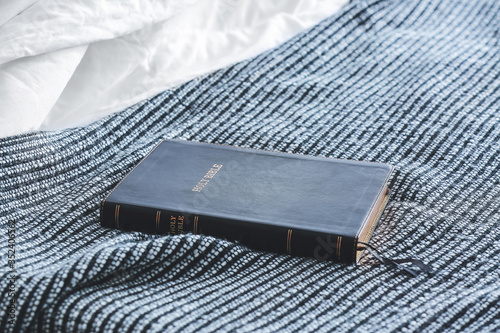 Holy Bible on bed in room