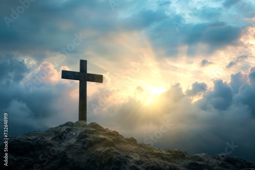 holy cross symbolizing the death and resurrection of Jesus Christ with The sky over Golgotha Hill