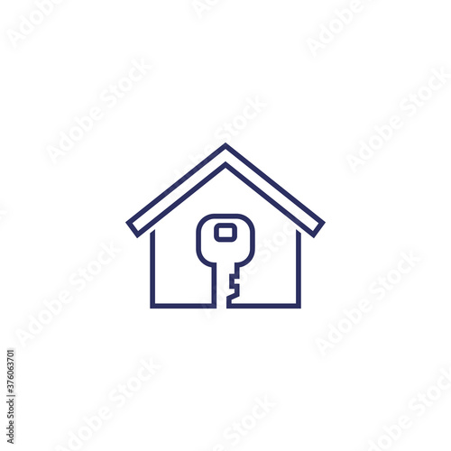 home and key line icon on white