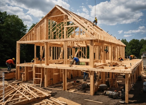 Home construction. The frame of the house. Cottage.
