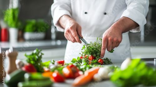 Home Cook Assembling Colorful Salad with Fresh Ingredients in Minimalistic Kitchen, generative ai