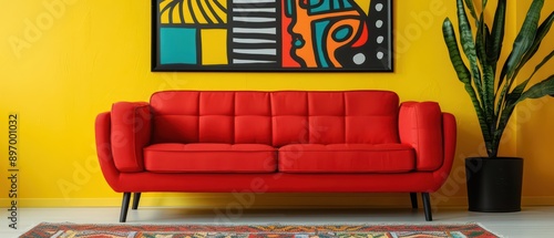 Home Dynamic Interior Vibrant Decor A lively room with bold colors, eclectic patterns, and dynamic artwork, depicting an ultramodern, supernatural scene, banner, with copy space