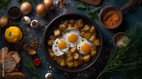 Home fries with lots of ingredients. Generative AI