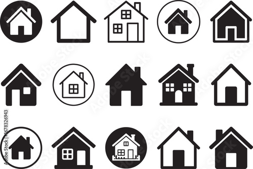 Home house icons set in flat black silhouette vector design illustration for apps and websites