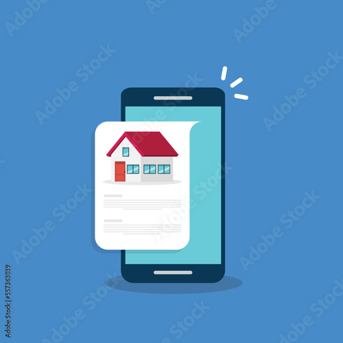 Home, house info notification on mobile phone. Digital app on smartphone device, rent or sell application or smart house notice.