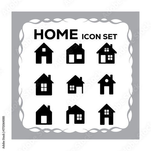 Home Icon Set in Decorative Frame Illustrating Real Estate and Property Concepts