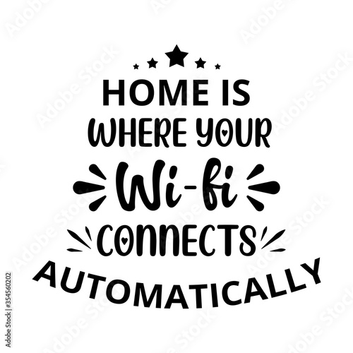 Home is where your wi-fi connects automatically - text word Hand drawn Lettering card. Modern brush calligraphy t-shirt Vector illustration.inspirational design for posters, flyers, invitations .