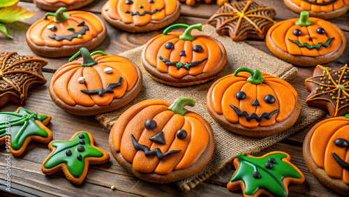 Home made Halloween pumpkin gingerbread cookies. Halloween concept