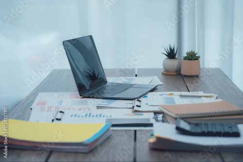 Home Office Desk with Laptop and Paperwork