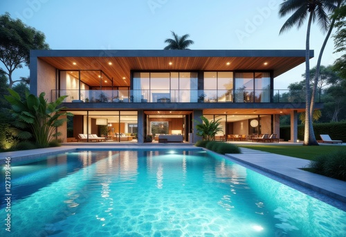 Home or house building Exterior and interior design showing tropical pool villa with green garden