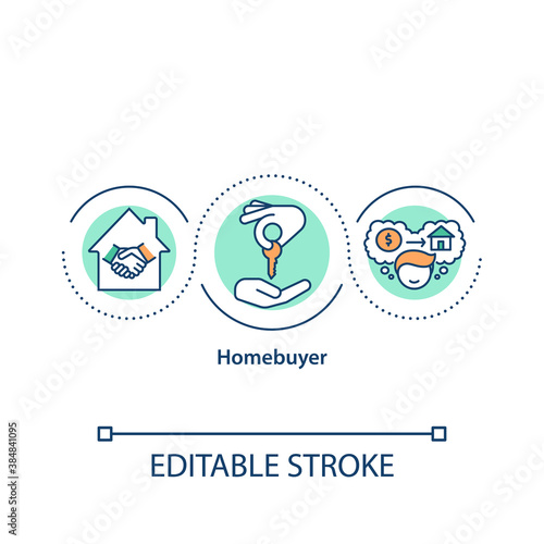 Homebuyer concept icon. Purchasing principal residence. Downpayment and mortgage. Buying home process idea thin line illustration. Vector isolated outline RGB color drawing.