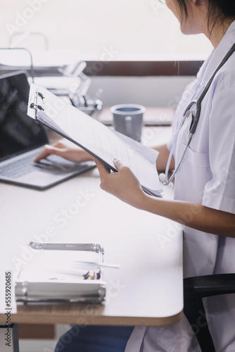Homecare nursing service and elderly people cardiology healthcare. Close up of young hispanic female doctor nurse check mature caucasian man patient heartbeat using stethoscope during visit