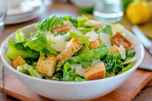 Homemade Caesar Salad with Crunchy Croutons. Generative AI.