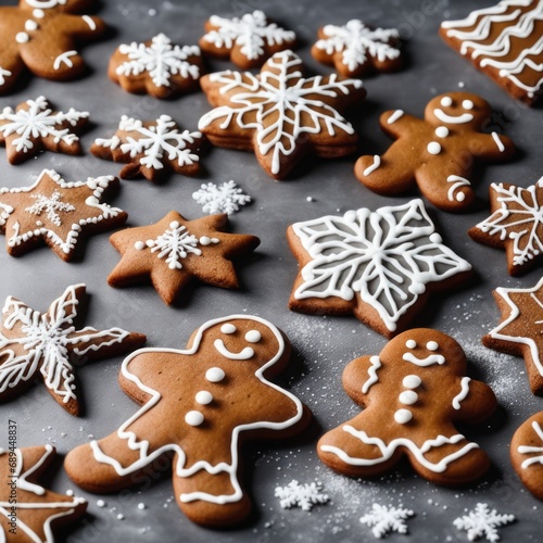 Homemade Gingerbread cookies with spices on a gray background.
