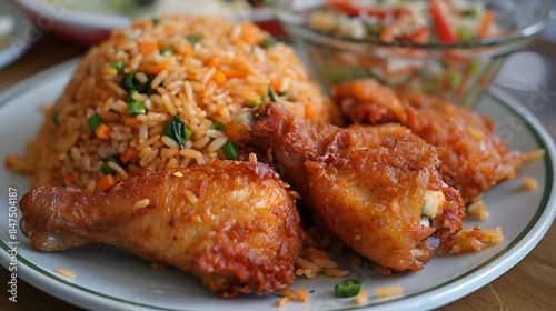 Homemade kebuli rice with fried chicken