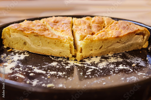 Homemade Khachapuri with cheese. In section, front view.