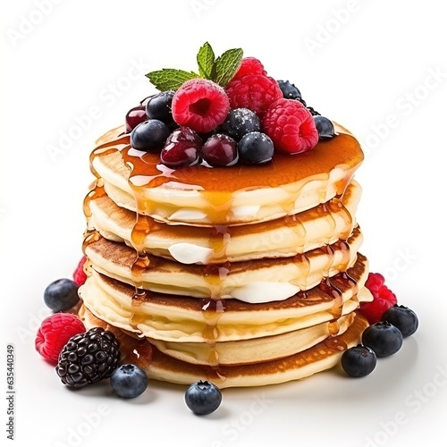 Homemade Pancake with raspberries on a white background. Generative AI