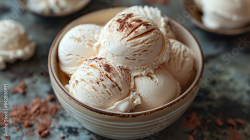 Homemade vanilla ice cream with chocolate and cookies in a bowl. Ice Cream Sundae Made with Scoops of Cookies and Cream Ice Cream, Whipped Cream and Cookies