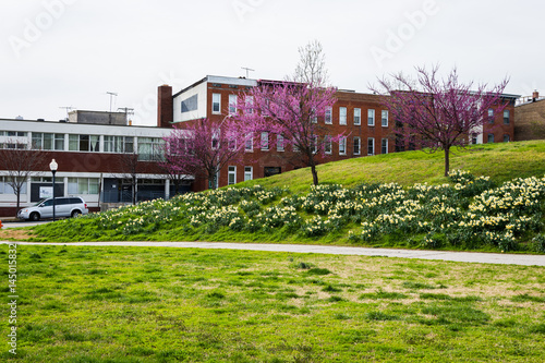 homes shot from patterson park in baltimore, maryland