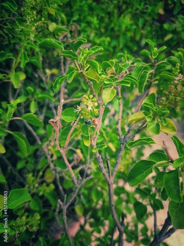 Honey Bee Drinking the juice of Basil Flowers and Make Honey
