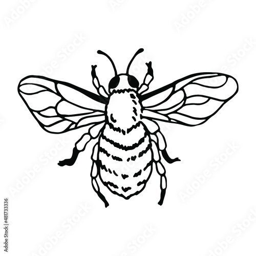 Honey bee in doodle style. Hand drawn clip art illustration.