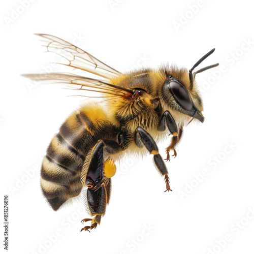 Honey Bee in Flight with Striped Pattern in Warm Lighting on White Background for Insect Documentation
