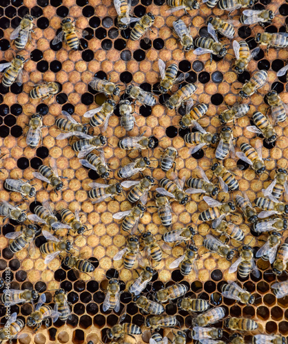 Honey bees on the home apiary
