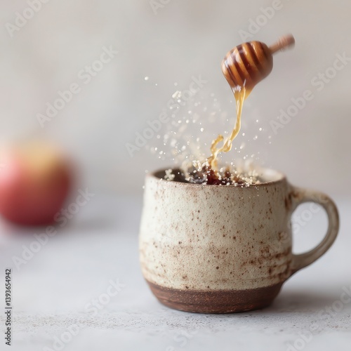Honey Drizzling into Tea Cup Splashing Drink Autumn Vibes