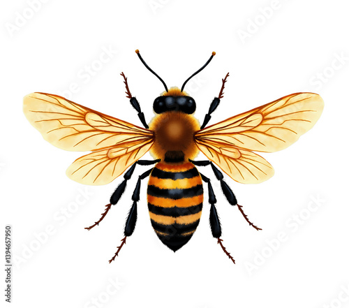 Honeybee Illustration, Orange & Black Stripes, Wings, Transparent Background