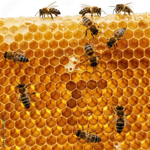 Honeycomb Close Up with Honey Bees Working and Collecting Honey