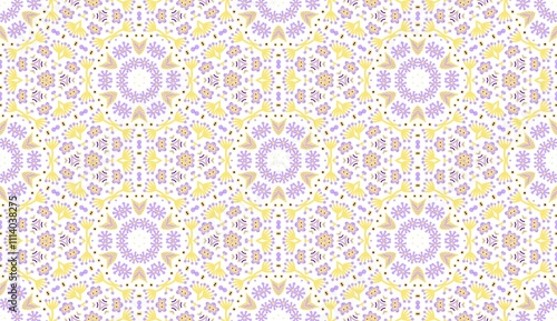 Honeycomb Floral Seamless Pattern in Yellow and Lavender.