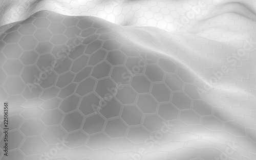 Honeycomb white with a gradient color on a light background. Perspective view on polygon look like honeycomb. Wavy surface. Isometric geometry. 3D illustration