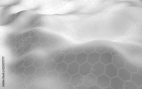 Honeycomb white with a gradient color on a light background. Perspective view on polygon look like honeycomb. Wavy surface. Isometric geometry. 3D illustration