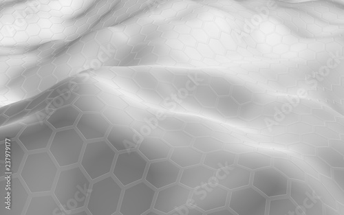 Honeycomb white with a gradient color on a light background. Perspective view on polygon look like honeycomb. Wavy surface. Isometric geometry. 3D illustration
