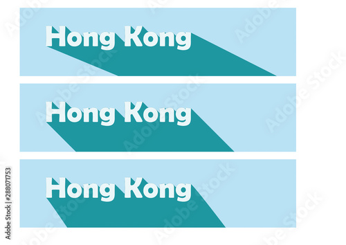 HongKong 香港 ベクター レタリング with long shadow. Vector illustration. Editable Path object long shadow.