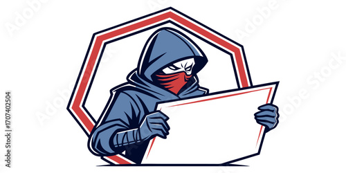 Hooded Figure Holding Sign gaming logo