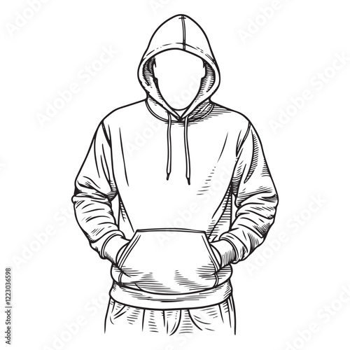 Hoodie-Wearing Man Outline Vector - Digital Art for Hoodie Fashion - Man in Hoodie Vector - Man in Hoodie Doodle - Hoodie Illustration - Man in Hoodie Line Art