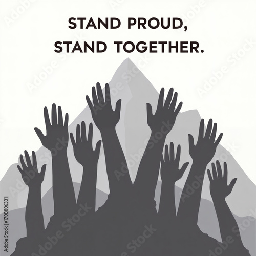 Hopeful Unity: Silhouetted Hands Raised High Against Mountain Peak