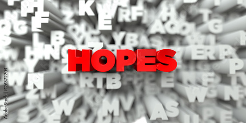 HOPES - Red text on typography background - 3D rendered royalty free stock image. This image can be used for an online website banner ad or a print postcard.