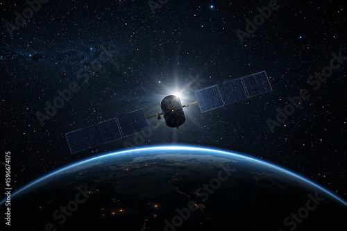 Horizon's Embrace: Satellite, Earth, and Sun's Glimmer