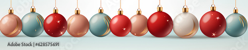 Horizontal banner. Christmas globes, ornaments - Generative AI