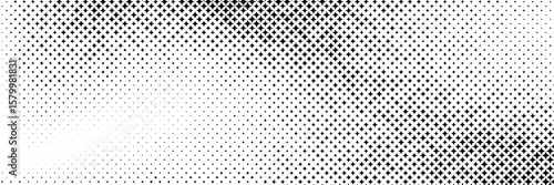 horizontal black halftone of glowing star design for pattern and background.