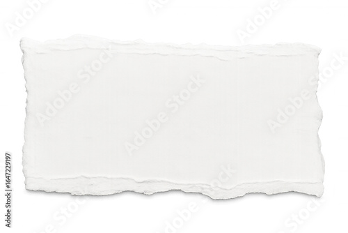 Horizontal blank ripped white paper with jagged edges creating a textured border, isolated on a transparent background