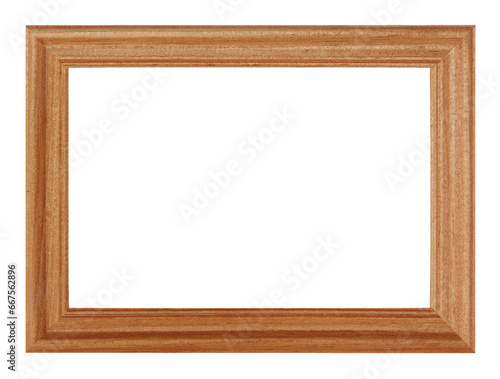 Horizontal classic wooden photo frame with copy space isolated on transparent background. PNG format clip art.