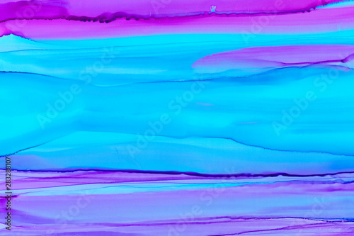 Horizontal colorful brush waves alcohol ink texture background. Chaotic decorative expressionist artwork.