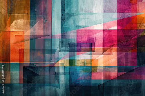 horizontal colourful illustration of geometric transparent layers and shape in an abstract painting background